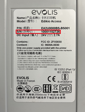 *From serial number 10001152726. You can find the serial number on the underside of your Access. You will find a label and the indication S/N, which corresponds to the serial number of your printer: